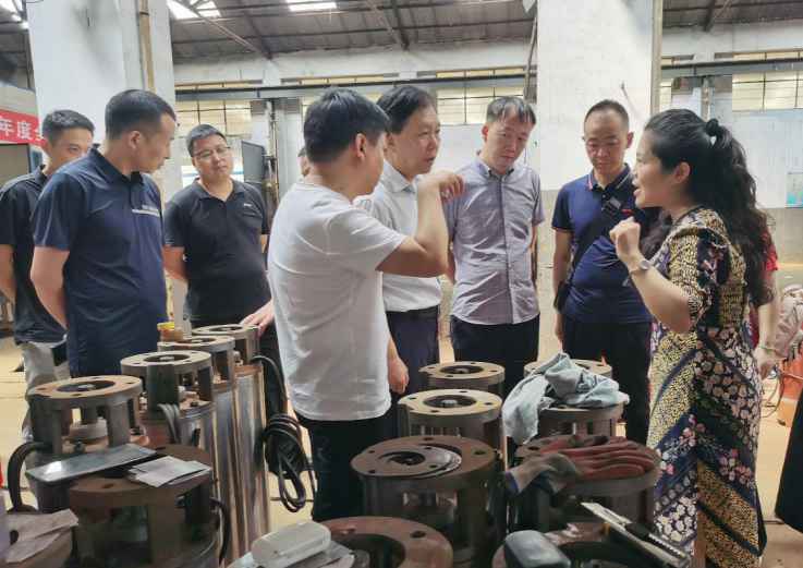 7月25日14:30分河南省商务厅电商处孙琪处长亲临武汉波涛人才培训与发展有限公司工厂,在协会明朝利会长、党支部拓耀书记、武汉波涛人才培训与发展有限公司黄娜总经理和多名慈善企业家的陪同下慰问了一线的生产工人,并参观了武汉波涛人才培训与发展有限公司的生产车间,了解水泵的制造工艺流程、质量标准体系等专业知识。